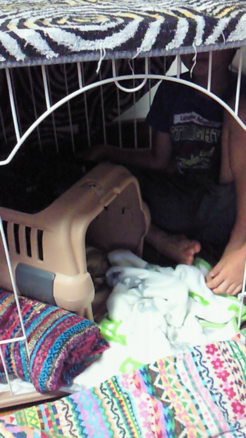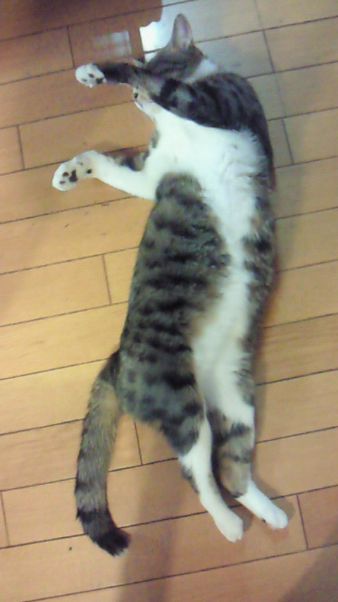 爆睡の中、ご飯から戻って子供達を舐め回して、