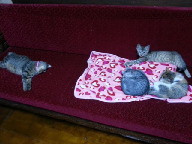 みぃちゃんの走る後をるぅちゃんがついて回り、母性本能が出てきたそうです...(うんうん)。